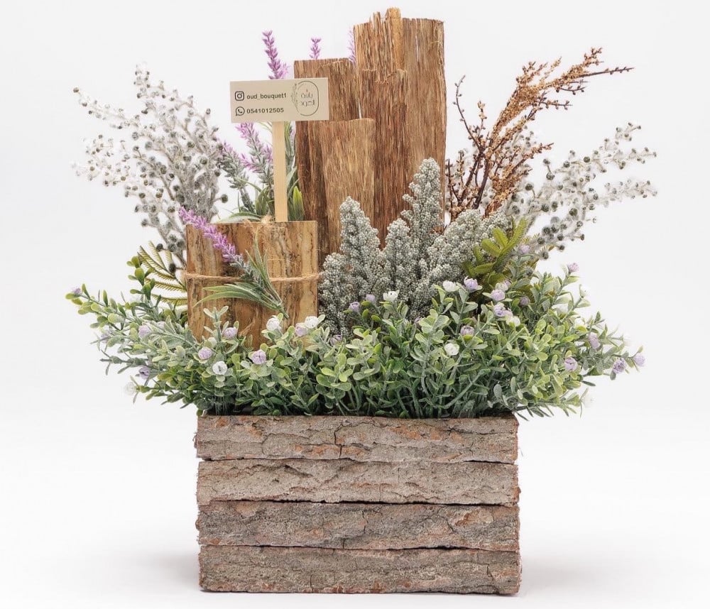 باقة الخزامى مع اغصان الورد الصناعي ورقائق العود الطبيعي ( الحجم الصغير)🪷🪷